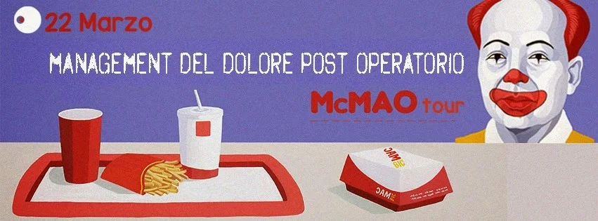 A due anni di distanza dall'acclamato "Auff!!", torna al Retronouveau di Messina una delle migliori indie bands dello stivale, i Management Del Dolore Post-Operatorio, per presentare il loro ultimo album uscito lo scorso 11 marzo dal titolo "McMao" per Color Sound Indie in coproduzione con MArteLabel e distribuzione Universal Music Italia. Oltre alle canzoni, da segnalare "James Douglas Morrison", è visibile anche il video-reportage a Sanremo del gruppo musicale che si è fatto notare negli ultimi anni nella scena emergente italiana.
